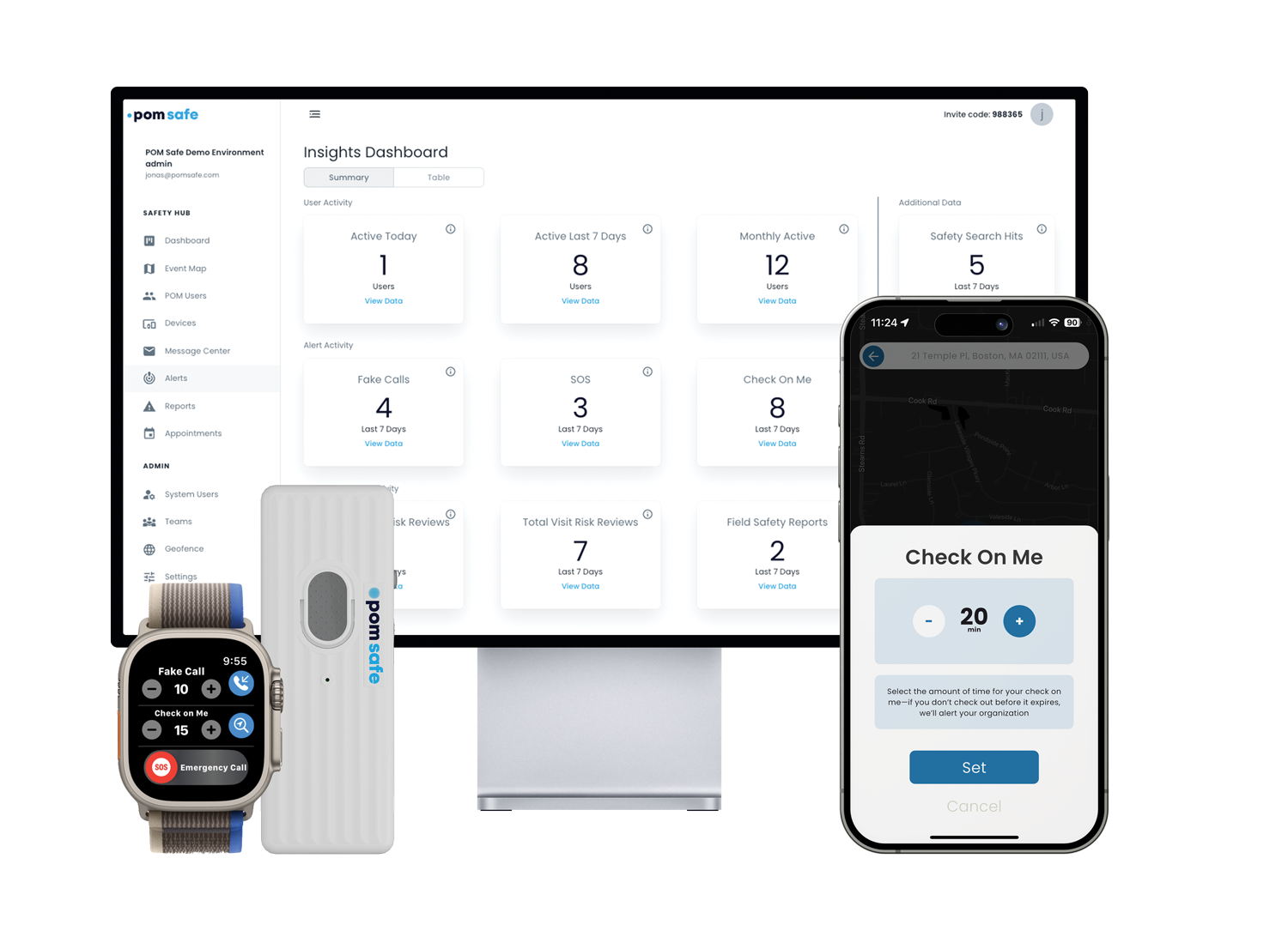Intake Risk Assessment is fully integrated into the POM Safe Safety Hub and complements other safety capabilities including emergency response support, location awareness, incident reporting, and post-incident review.